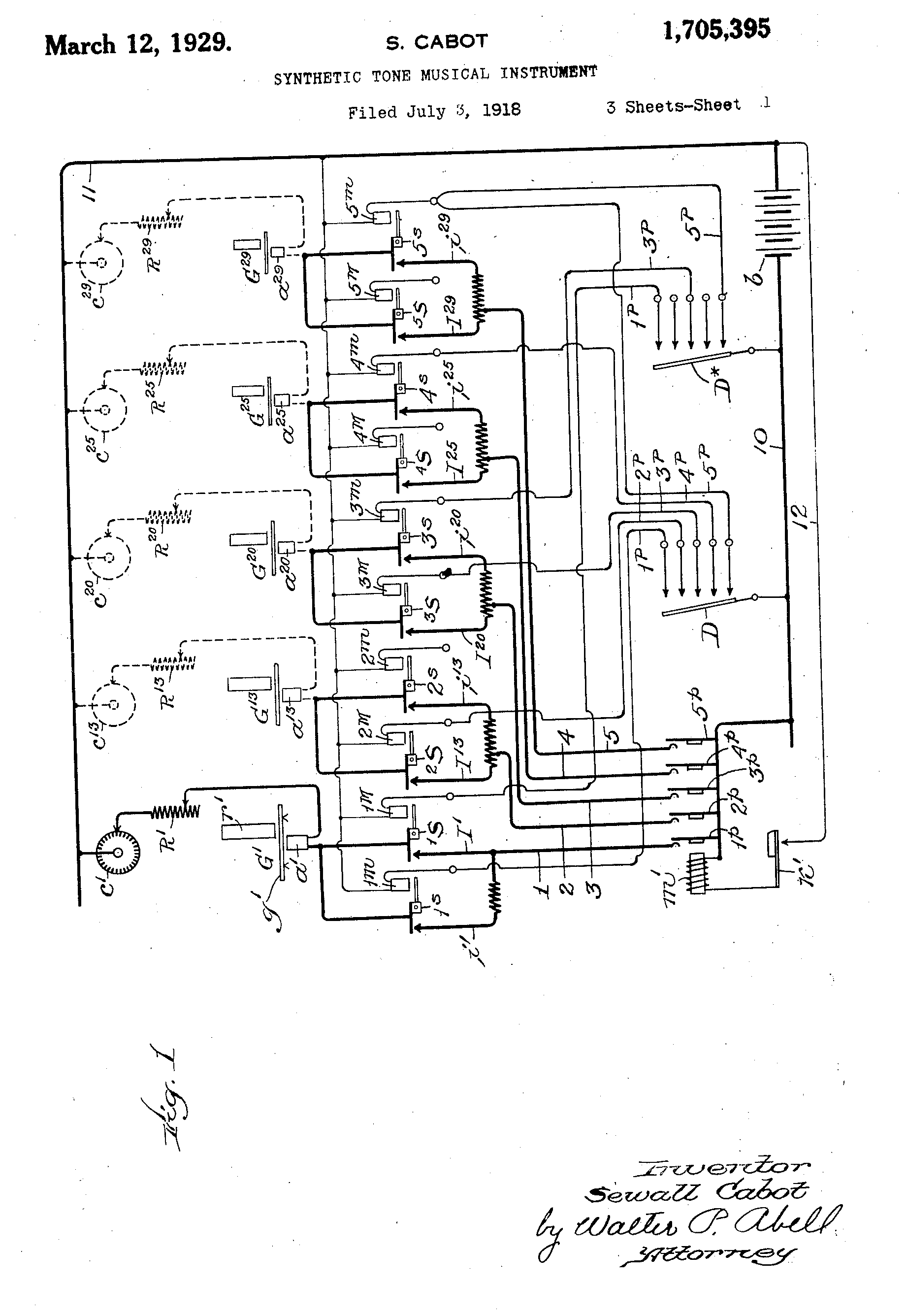 “One object of my present invention is to provide an improved musical instrument of relatively small cost and small dimensions in comparison to those of a pipe-organ, but capable of attaining all the musically useful results of which a pipe-organ is capable. Another object is to provide an instrument that will produce desirable tonal effects not heretofore obtainable from a pipe-organ.”2 United States Patent Office,#1705395
