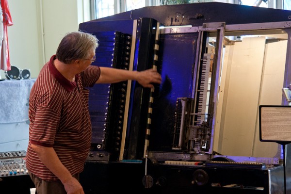 The non-drying mastic allows for immediate correction of the resulting sounds: portions of the plate that generate superfluous sounds can be smeared over, and missing sounds can be added. The speed of the score – the tempo of the piece – can also be smoothly regulated, all the way to a full stop via a handle at the front of the machine.