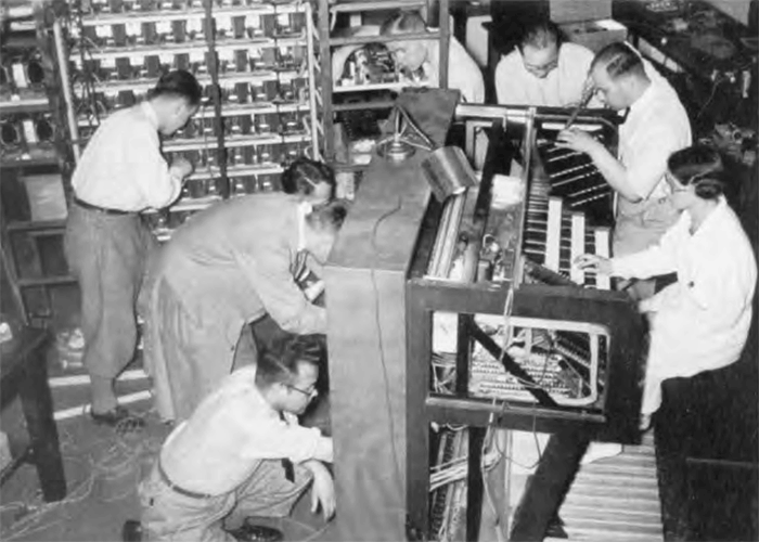 Vierling went on to develop another large electronic organ; the ‘Grosstonorgel’ (together with Karl Willy Wagner and the American engineer Winston E. Kock both at the Heinrich-Hertz-Institute. Winston Kock came to Berlin in 1933 as an exchange student at the Technical University of Berlin where he built an electronic organ for his diploma thesis. Since vacuum tubes were very expensive, he designed an instrument that relied instead on the smaller and cheaper neon tubes for the oscillators . He filed a patent for a use of inductive neon oscillators and sound-colour generation. It’s likely that the Grosstonorgel used similar neon or vacuum tube technology.