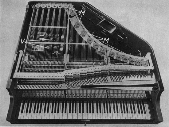 The vibrations from a normal piano string were recorded and amplified electronically. Various register circuits enabled the player to change the sound’s timbre ranging from “a delicate Spinettte, the lyrical tone of a parlour organ to the powerful sound emission of a grand piano”. A restored model of the Electrochord is kept in the music collection of the Deutsches Museum in Munich. During the early 1930’s Vierling worked closely with Jorg Mager at his Darmstadt research centre on the construction of Klaviatursphäraphon amongst other instruments.