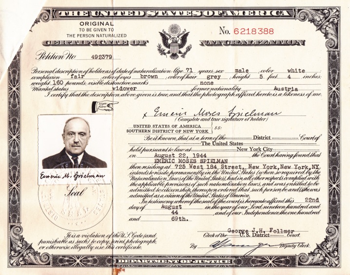 Emerich (Ernst) Moses Spielmann – 23.06.1873 Vienna, Austria – 1952 Elmhurst, Queens, New York, USA. Biographical notes