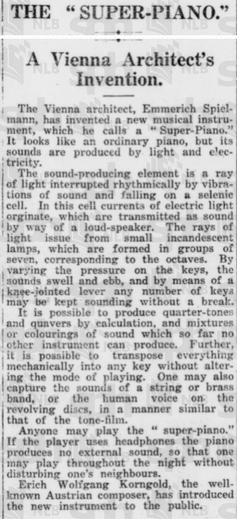 1 Spielmann, Emerich (1933) WIE ICH DAS SUPERPIANO ERFAND, Radio Wien, 31 March 1933, 3.