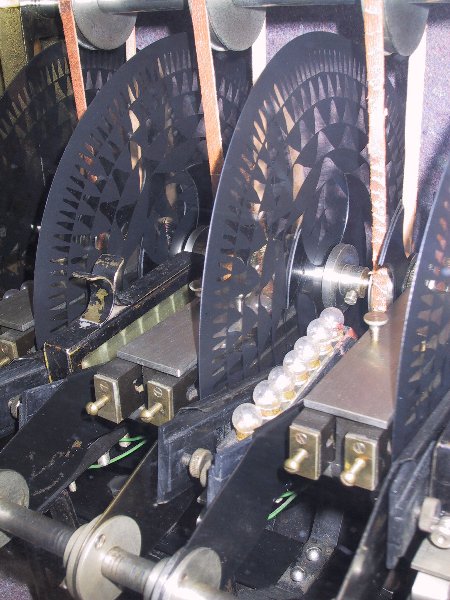 Spielmann’s Superpiano, patented in 1927, was a keyboard instrument based on the photo-optical principle used in a number of instruments during the 1920s and 30s: the Cellulophone, the Radio Organ of a Trillion Tones, ‘Sonothèque’, the Welte Licht-ton Orgel and others. In general, this principle worked by projecting a light beam through a spinning glass disk onto a photoelectric cell. The regular interruption of the light beam causes an ‘oscillating’ voltage tone. Spielmann’s innovative instrument used two rows of twelve black, photographically reproduced celluloid disks. Each disk had a series of holes cut in seven concentric circles equating to the waveforms of the seven octaves of a note – the light beam being picked up by selenium photo-electrical cells.